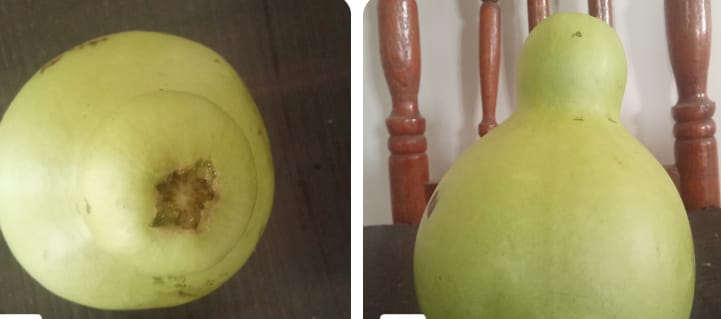 NOB- Nizamabad news: Variety shaped gourd in the vegetable garden of one’s residence in the center of Nizamabad district. They were surprised to see this strange. Usually we are looking in the market the shape of the bottle gourd as elongated, but in their vegetable garden, it is a strange shape as Ganapathi. Others are discussing that this is a nature’s strange.