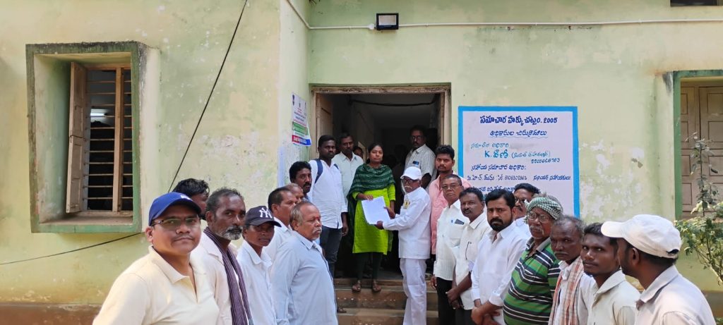 NOB-Bhadradri Kothagudem news: The leaders of the Adimah Adivasi Welfare Association demand that action be taken against those who illegally obtained the ST certificate and against the officials who gave it. A memorandum was given to register a SC/ST atrocity case against the MRO and SI under the Adimah Adivasi Welfare Association in Dammapeta, Bhadradri Kothagudem district, against the officials who illegally obtained and gave the ST caste certificate. A non-tribal woman named Kandukuri Rani, a resident of Chinna Gollagudem village, Dammapeta mandal,Bhadradri Kothagudem district, obtained an ST Koya caste certificate from the Dammapeta mandal tahsildar office on 8/10/2020 and illegally occupied about 15 acres of innocent tribal lands and filed illegal cases against the tribals, physical attacks and intimidation. After learning about such a matter, the Adima Adivasi Welfare and Rights Protection Association submitted complete evidence about the woman to the Kothagudem District Collector. The Collector conducted a full investigation into and on the woman who had obtained a fake ST caste certificate. He said that orders had been issued on 21.02.2025 to cancel the caste certificate. The leaders of the tribal associations said that strict action should be taken against the officials who obtained and issued the fake caste certificate. Kanneboina Venkata Narasaiah, Karam Bujji, Chavalam Krishnaiah, Raoula Apparao, Shobhan Babu, Lakshmi, Vasam Polaiah and others participated in this program.
