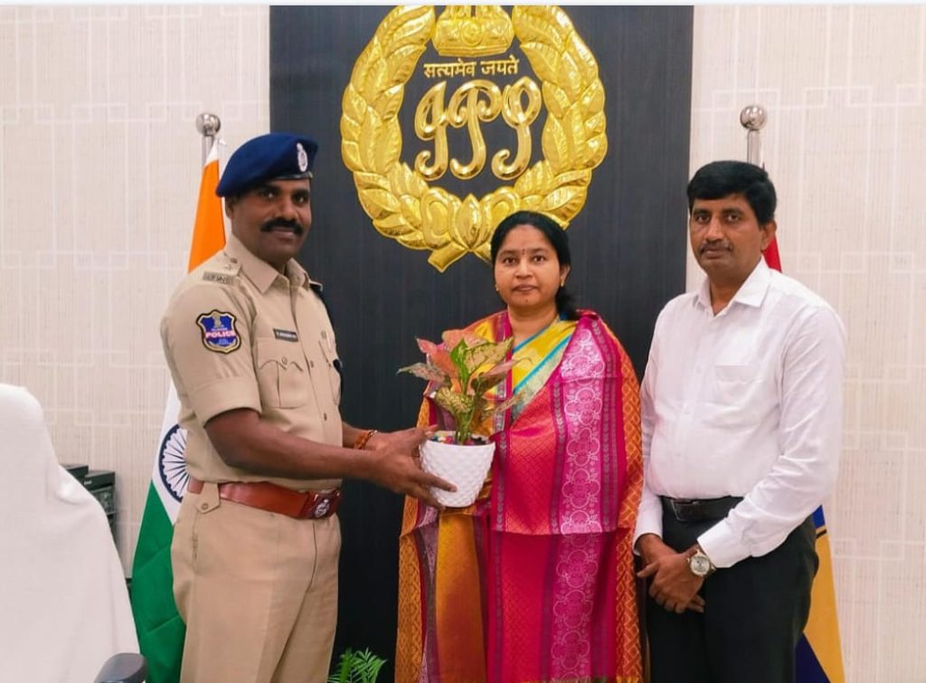 NOB- Penapahad news: Maram Pavitra, who was selected as the national best teacher while working at the Zilla Parishad School in Penapahad Mandal Center, was congratulated. On this occasion, SP Narasimha IPS felicitated and congratulated the couple Pavitra and Manmadha Reddy at the District Police Office on 27.08.2025. He asked them to continuously work towards providing quality education and shaping them into the best students. The SP was accompanied by Special Branch Inspector Rama Rao and CC Sandeep.