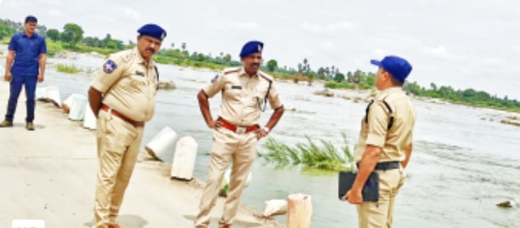 NOB- Suryapet news: Suryapet District SP Narasimha IPS said that the police are vigilant at projects and bridges during the rainy season. On 08.08.2025, the flow of the Musi river was inspected in Suryapet Rural. The bridge was inspected at Bhimavaram village. The police personnel were instructed to be vigilant and took measures to prevent accidents and to install danger warning sign boards. People were asked to follow the instructions of the authorities. He said that no one should go into the flowing water. He asked people not to go fishing, and said that the youth should avoid accidents. He said that the people are being alerted from time to time by closing the catchment areas of Suryapet Rural, Penapahad, Nereducherla and Palakaveedu. He said that due to the lifting of the gates of the Nagarjuna Sagar project, the water level in the Krishna River is high, so do not go to the Natupaduvala or enter the river. He asked people to make use of police services in times of emergency by dialling 100 and calling the District Special Branch 8712686026. The SP who visited the closure was accompanied by Suryapet Division DSP Prasanna Kumar and local officials.
