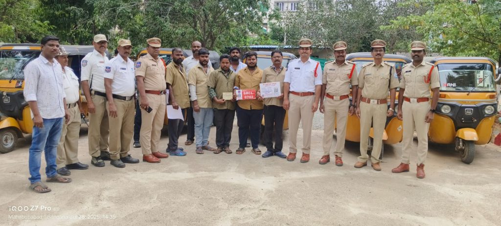 NOB-Mahabubabad News: To provide safe travel to the people of Mahabubabad district, the District Police Department launched QR code (My Auto is Safe) on 28.07.2025, as per the instructions of District SP Sudhir Ramnath Kekan IPS, Rural Circle Inspector Sarvayya Traffic SI Arun Kumar and traffic staff made all the auto, rickshaw and drivers in the district fully aware of the QR code stickers “My Auto is Safe” and advised them to register at the town police station. Those who register should bring with them 1) Aadhaar card 2) RC card 3) Two passport photos 4) Mobile number. QR code stickers will be attached specifically to the auto rickshaws registered at the town police station. The main objective of these is to provide safe and regulated transport services to passengers, especially women, children and the elderly. The services include QR code for registered vehicles, driver’s complete biodata, registration details, emergency call, instant assistance through SMS, a system to send live location information of the currently traveling auto to the Command and Control Center, and the opportunity to immediately complain about the driver who has misbehaved. Passengers traveling should choose only officially recognized autos, should not travel beyond the limit, and preference should be given to autos with a driver wearing a uniform and having a QR code. Through this system, women’s safety, when women travel, suspicious driving, indecent behavior, or harassment can be reported immediately by scanning the QR code. A special live tracking system has been set up for immediate response after the information reaches the nearest police station. It will be easier to protect those in danger. Some suggestions from the police department to the people: 1. Strictly follow traffic rules 2. Drunk and drive, 3. Rash driving, 4. Hit and run etc. They warned that strict action will be taken against illegal acts. Every auto driver was advised to work with safety, responsibility and commitment towards the society. Rural CI Sarvayya, Traffic SI Arun Kumar, Constables Prashant, Ashok DTO officers, police personnel, auto owners and drivers participated in this program in large numbers.