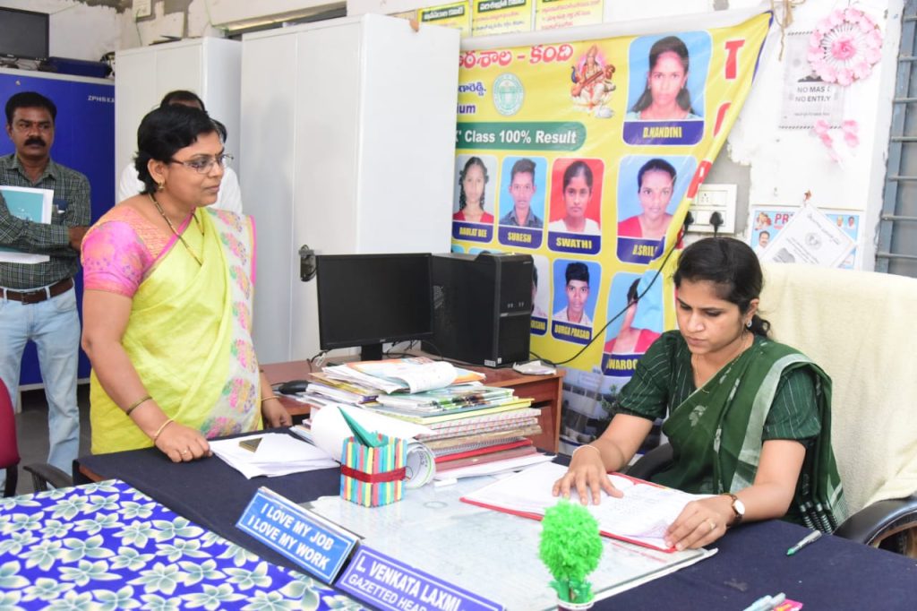 Collector Kranti made a surprise inspection of Kandi Zilla Parishad High School. Besides inspecting the school, the attendance register of the teachers was inspected.The government has given top priority to education, It is said that the students will be provided all the facilities in the schools.It was suggested to HM that the number of students should increase and the teachers should work in that direction. Collector asked the HM to dig a bore for the school.