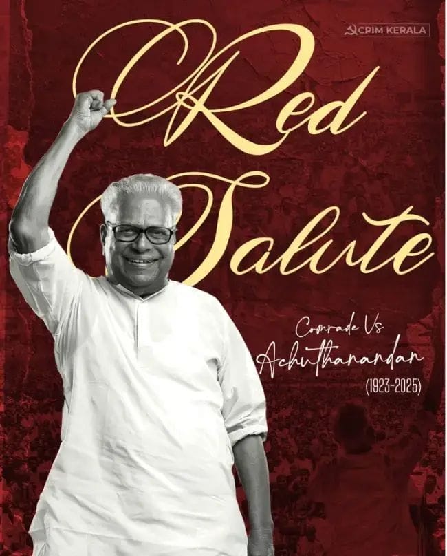 NOB-Thiruvananthapuram news: Communist veteran and former Kerala Chief Minister VS Achuthanandan (101) passed away. He was admitted to a private hospital on the 23rd of June 2025 due to a heart attack. He breathed his last on 21.07.2025 as his health condition deteriorated further. It is known that he served as the Chief Minister of Kerala from 2006 to 2011. Achuthanandan was also one of the people who founded the CPM after a split in the Undivided Left Party. Born on October 20, 1923 in a poor family in Kerala, Achuthanandan along with the lives of Lenin, Stalin and Mao is a rare leader who has witnessed many key moments in the history of world communism. Achuthanandan, who dropped out of primary education due to poverty in his childhood and worked in tailor shops and coconut factories, entered the labour movement. He became a member of the Communist Party in 1940. His political career, which began with his imprisonment as part of his struggle against landlords in the pre-independence Travancore princely state, gradually rose to the level of chief minister as a public leader. In 1964, he left the CPI National Council and played a key role in the formation of the CPM. He was elected to the Kerala Assembly from 1967 to 2016, serving as chief minister once (2006-2011) and as leader of the opposition three times. Achuthanandan, who never backed down in the fight against corruption. As the Chief Minister, he took an iron fist even on land encroachers in the state. Even though many people opposed these actions, he did not shy away. When there was a gap between the parties, he put aside the discipline of the Marxist party and stood by the people. Despite facing insults in this process, he never gave up his honesty and modesty. Although he was born in 1923 he was a constant student who understood modern needs. Just as in the old generation, land was concentrated in the hands of a few he realized that in the technological world, the monopoly of a few companies in the form of software was increasing he campaigned for open source software that would be available to everyone. Even at the age of 93, VS became a triumphant figure for the communists in 2016.