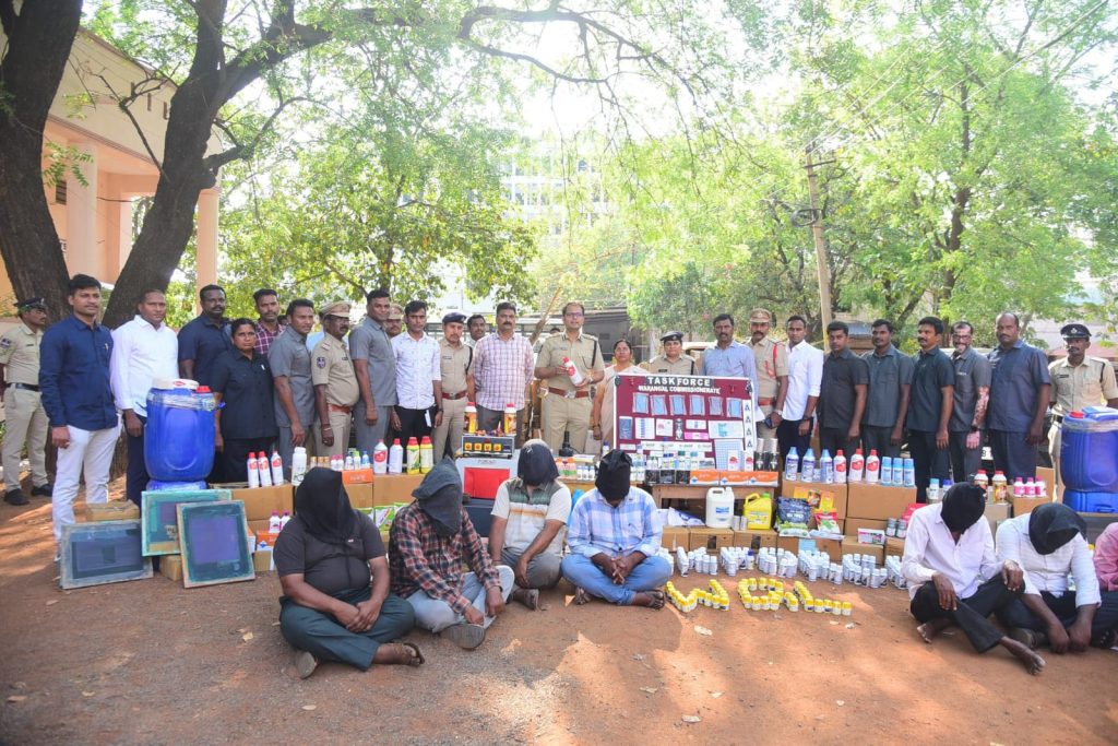 NOB- Warangal news: The Task Force and Mattewada police have jointly arrested seven members of a gang selling expired pesticides under the names of famous companies that target innocent farmers. One is absconding and the other is currently in jail. The police have seized fake pesticides, fake seeds, fake pesticide manufacturing machinery, printing equipment, two cars and six cellphones worth Rs. 78 lakhs from the accused. Details of the accused arrested by the police: 1. Irukulla Vedaprakash (53), Mattewada, Warangal. 2. Mohammed Siddique Ali (46), Lakshmi Puram, Warangal. 3. Nuka Rajesh alias Raju (40), Sultanbad, Peddapalli district. 4. Yallam Sadashivudu (57), Karimnagar. 5. M.D. Rafiq (50), Govindaraopet, Mulugu district. 6. Allacheruvu Shekhar (37), Madugu, Prakasam district. A.P. 7. Podilla Sambayya (55), Duggondi, Warangal district. 8. Vishnu Vardhan (currently absconding). 9. Muddagula Aditya (32), Hyderabad (currently in jail). Warangal Police Commissioner Sanpreet Singh, IPS, disclosed the details of this arrest. According to the information received by the police, the task force and the Mattewada police and the business officers jointly raided the house of the main accused Irukulla Vedaprakash in the Bodrai area of Mattewada and seized a large amount of fake and expired pesticides from the house where three other accused Siddique, Rajesh and Sadashivudu were not taken into custody by the police. After the accused were taken to the Mattewada police station, the police interrogated the accused. The main accused Irukulla Vedaprakash, with the idea of making easy money, purchased a large amount of expired pesticides from local pesticide dealers and also used to buy them from another accused Siddique, who was a representative of a local pesticide company. Along with the expired pesticides purchased in this way, two other accused, Allacheruvu Shekhar, Vishnuvardhan, and Aditya, who are currently in jail, used to purchase fake pesticides manufactured under the names of famous pesticide companies like Danuka, Tata, Rails, Bayer, Adama and some other companies. Along with the expired pesticides collected in this way, he distributed the fake pesticides to the remaining accused who did not have any government permits. The accused who purchased these fake pesticides used to sell them to local farmers and cheat them. Along with the main accused arrested by the police, Sadashivudu, Raju and Aditya are accused in several cases in the past. Based on the information given by the main accused, the task force and Mattewada police raided Allacheruvu Shekhar and Vishnuvardhan Goud and seized a large quantity of fake pesticides, machinery and equipment used for their manufacture, labels, adulterated seeds, two cars and cell phones. The task force, which has shown excellence in catching the accused in this adulteration case, has been entrusted with the task of arresting to Warangal ACPs Madhusudhan, Nandiram Nayak and Inspectors. The Police Commissioner congratulated Raju, Gopi, SIs Vamsi Krishna, Naveen, RSI Bhanu Prakash, AAO Salman Pasha, and Task Force Constables Suresh, Surender, Sambaraju, Srinivas, Satish Kumar, and Nagaraju.