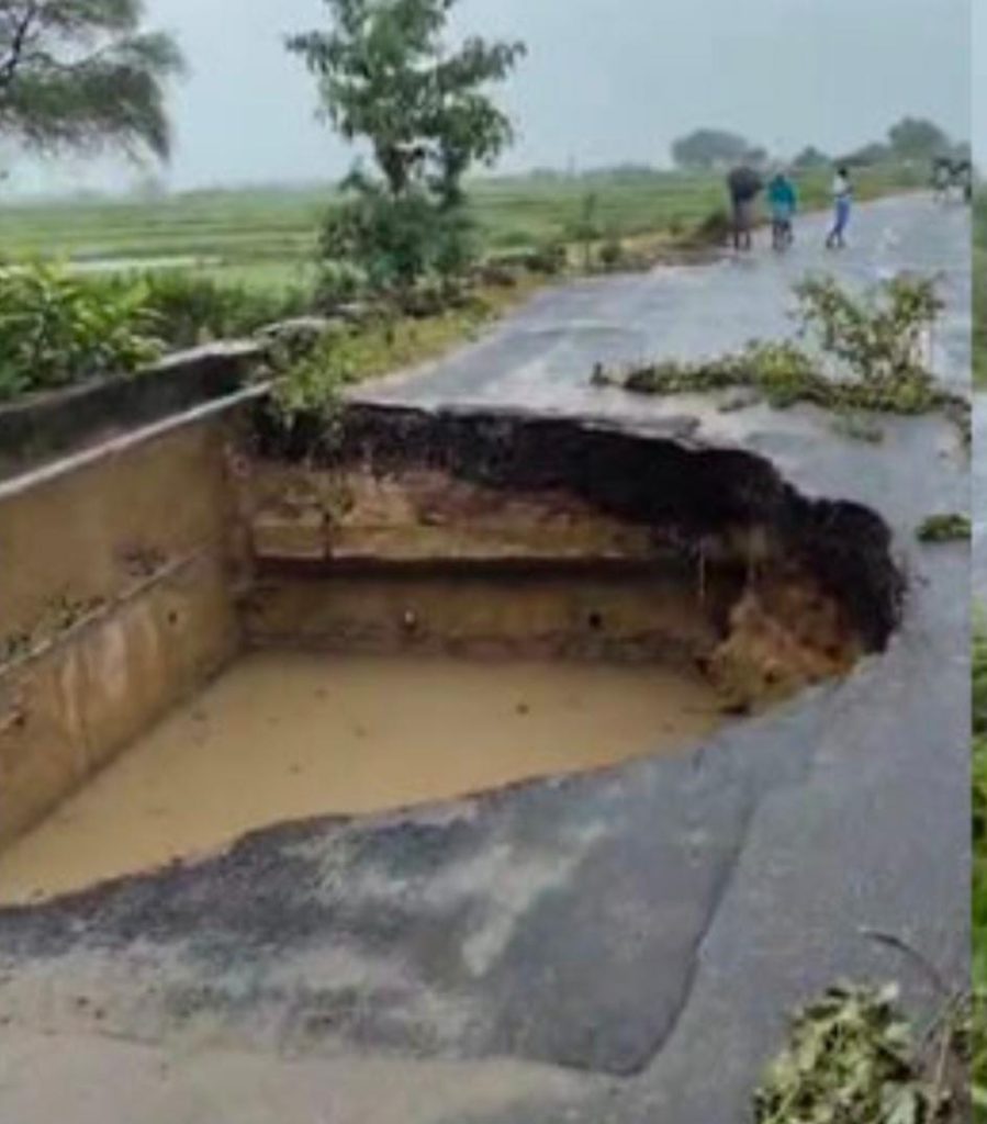 NOB-Adilabad news: It has been raining continuously in Adilabad district for the past two days. The Kallur-Kuntala road in Kuntala mandal of Nirmal district has become dangerous. Due to the heavy rains that have been falling since 27.08.2025 night, the road in that area has been eroded to a large extent due to the violent flow of the Andakur Alugu on the road. Due to the erosion of a large part of the road on one side, there has been severe disruption to traffic, and the Nirmal police have made several suggestions to motorists going from Adilabad to Hyderabad. Motorists going from Adilabad to Hyderabad via Kamareddy should take a U-turn to the left from the Kondapur bridge near Nirmal. From Kondapur, they will have to go to Hyderabad via Mamada Khanapur Met, Jagityala, Karimnagar, said Nirmal District SP Janaki Sharmila. If the rain continues like this, there are situations where transportation on the Kallur-Kuntala road route will be completely disrupted. Apart from this, there are situations where traffic on that route will come to a complete standstill, due to heavy rain, the Venkur Lowell Bridge will also flow violently and crops will be submerged. Soya, cotton, rice, crops have been submerged due to waterlogging. Farmers are worried as their crops have been damaged due to heavy rain.