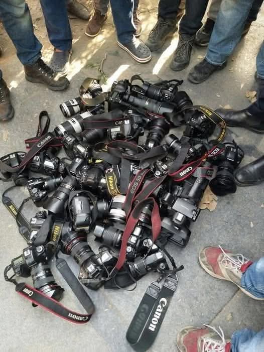 NOB- Delhi news: On 23.03.2025 in Delhi, while the police were doing lathi-charge on a fallen student, Hindustan Times reporter Anushree was about to capture the scene on her camera. Seeing this, the police officer shouted, “Break her camera.” The policemen fell on her and snatched the camera. At the same time, another female journalist who was there, a police officer pushed her back by touching her with his hand on her chest. Later, they explained that they pushed the female journalist because they thought she was a student. The police have the authority to put their hand on the chest of female students? That is not sexual harassment? Just then, First Post reporter Praveen Singh suffered a serious injury to his hand. Several other journalists were also injured. In protest against the attack that took place on 23.03.2025, photojournalists in Delhi staged a protest with their cameras in front of the police headquarters on 24.03.2025. It is said that pictures speak louder than words. This is such a wonderful picture. Will media laws come and go, will media laws become political tools?