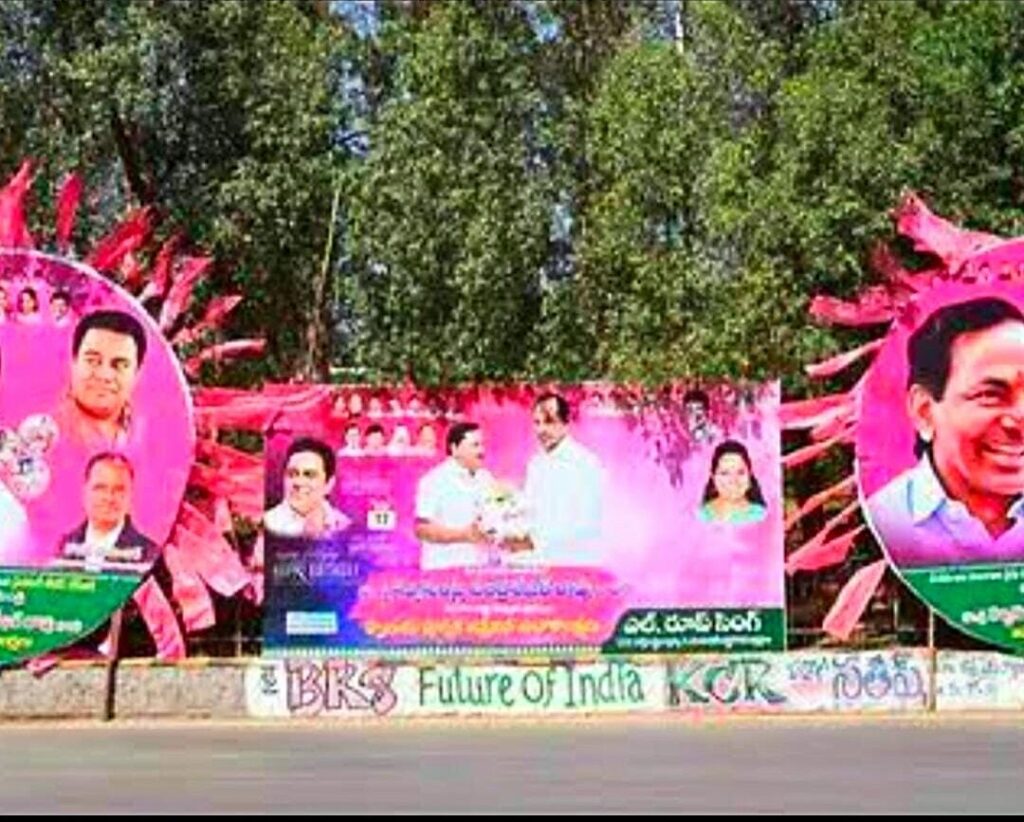 RSD- Hyderabad news:There is an atmosphere that the birthday of Minister KTR has come one day earlier. On 24.07.2023 was KT R’s birthday and BRS leaders arranged his plexiglass as a competition. Party leaders Karnati Vidyasagar and former mayor of GHMC Bonthu Rammohan set up plexes on metrofillers from Miyapur to LBnagar square to wish KTR on his birthday. While Vidyasagar is hoping for a ticket from Munugodu. Rammohan is expected to contest from Uppal. Plexiglas of these leaders were also seen near the Jubilee Hills check post.