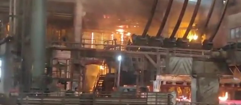 NOB-Visakhapatnam news: A major fire accident has occurred at the Vizag Steel Plant. A fire raging in the SMS-2 Mission. Fire crews who reached the accident site tried to control the fire. As the fire raged heavily, thick smoke billowed in the vicinity of the steel plant.  A major accident was averted at the steel plant four days ago. On 18.05.2025, about 300 trucks of liquid steel were spilled on the ground in Blast Furnace-2. While arrangements were being made to fill the liquid steel from the furnace into a Turbo Ladle Car (TLC) and move it to SMS, a hole was made in the TLC and the liquid steel fell down. The fire broke out and the cables and the track were damaged. Everyone breathed a sigh of relief as there was no loss of life. There is widespread concern as another fire breaks out in four days.