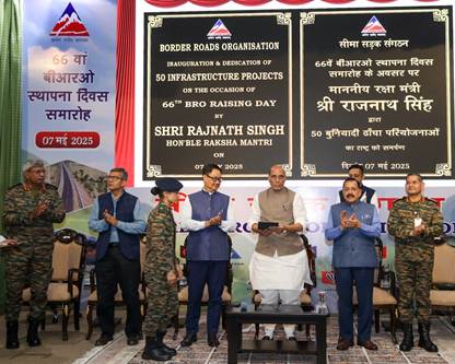 Rajnath Singh emphasised on the need to build new generation infrastructure for the Armed Forces in view of the current geopolitical scenario. BRO must ensure that the preparations are at war-level, he said. Raksha Mantri reiterated the Government’s commitment to ensure border area development, making special mention of Sela Tunnel which has become a symbol of this resolve to enhance connectivity in strategically-important areas. He highlighted the vision of Prime Minister Narendra Modi to revitalise border villages, stating that initiatives like the Vibrant Villages Programme under which the Government is increasing connectivity by building about 35 kilometers of roads every day.In his address, Director General Border Roads (DGBR) Lt Gen Raghu Srinivasan highlighted the growing national importance of BRO, stating that the organisation has emerged as the agency of choice for key central ministries for executing infrastructure projects in the most challenging terrains. He reaffirmed the BRO’s commitment to the well-being and dignity of its workforce, including GREF personnel and Casual Paid Labourers. Minister of Parliamentary Affairs and Minister of Minority Affairs Kiran Rijiju, Minister of State (Independent Charge) Science & Technology; Earth Sciences, MoS PMO, PP/DoPT, Atomic Energy and Space Dr Jitendra Singh, Chief of the Army Staff Gen Upendra Dwivedi, Defence Secretary Rajesh Kumar Singh and other senior officials of Ministry of Defence were present at the venue. Himachal Pradesh Governor Shiv Pratap Shukla, Arunachal Pradesh Governor Lt Gen Kaiwalya Trivikram Parnaik, Rajasthan Governor Haribhau Kisanrao Bagde, Arunachal Pradesh Chief Minister Pema Khandu, Mizoram Chief Minister Lalduhoma, Jammu & Kashmir Lt Governor Manoj Sinha, Lt Governor Ladakh Brig. (Dr) BD Mishra (Retd) joined the event virtually.