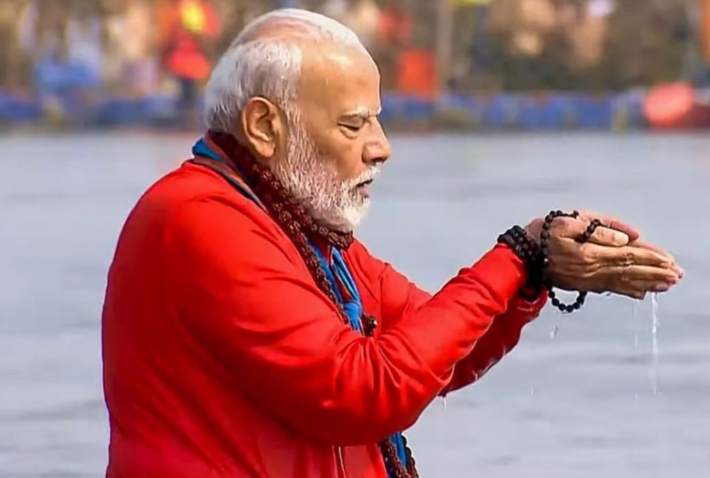NOB- Pryagraj news: The spiritual festival Mahakumbh Mela is attracting the attention of the world. Just in time for the Delhi Assembly elections. Indian Prime Minister Narendra Modi participated in a spiritual program. Prime Minister Modi attended the Mahakumbh Mela being held in Prayagraj, Uttar Pradesh.After reaching Prayagraj Airport, Prime Minister Modi went to Arail Ghat from there. He traveled by boat from Arail Ghat to reach the place where the Mahakumbh Mela is being held. Later, Prime Minister Modi took a holy dip at the confluence of Ganga, Yamuna and Saraswati Triveni.He returned to Arail Ghat from that area by boat. After that, he reached Prayagraj Airport from Arail Ghat and from there he returned to Delhi. In the wake of Modi’s visit, heavy security arrangements have been made near the city of Prayagraj as well as the Kumbh Mela.The Mahakumbh Mela, which began on January 13th 2025, will end on the 26th February 2025 on the day of Maha Shivaratri. Devotees flocked to the Triveni Sangam to take holy dip in the Prayagraj Mahakumbh Mela. All the ghats of Prayagraj were crowded with devotees.The Uttar Pradesh government has said that 38 crore people have come to the Kumbh Mela so far. Along with the common people, many celebrities are also attending this Kumbh Mela.