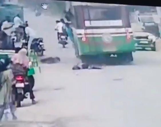 NOB-Medak District news: A tragic incident took place in Medak District on 03.12.2024 afternoon. A student was seriously injured after being run over by an RTC bus.The scenes related to this were recorded in CCTV footage. At Narsingi intersection in Papannapet mandal of Medak district, a student named Boda Akhila (16) fell under the bus after many people boarded the RTC bus.The bus ran over her feet, causing serious injuries to the student. Another student was also injured along with her. The locals rushed her to the hospital.
