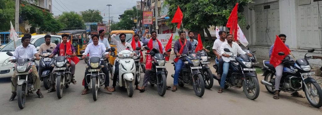 NOB- Telangana news: A motorcycle rally was taken out in Nizamabad city under the Left Student’s Union, demanding that education sector issues be resolved across the state of Telangana. On this occasion, PDSU District General Secretary Dr. Karka Ganesh said that the mid-day meal scheme should be implemented in government junior colleges. Private, corporate schools and colleges are charging high fees and the Fees Control Act should be implemented. Pending fee reimbursement, scholarship, and best available school dues should be released immediately. They said that teachers, lecturers, MEO, and DEO posts should be filled across the state and free bus passes should be implemented for students. They should build their own buildings for Gurukuls and SMS hostels. They want to be provided with basic facilities in government educational institutions. They want to implement the Right to Education Act. On this occasion, the Left student unions have called for a strike in government private schools and junior government colleges on the 23.07.2025, demanding that the state government resolve the problems in the education sector. SFI District Secretary Rachakonda Vignesh, AISF District Secretary Raghuram, PDSU District General Secretary Jannarupu Rajeshwar, AIPSU State President Boda Anil, AISTS National Convener Maitri Rajasekhar, PDSU District President Anumula Satish, SFI District Vice President Dinesh, City Presidents Azad, Abi, Ganesh, PDSU District Vice Presidents Ashur, District Leaders Vinod, Srujan, Manoj, Gabbar Singh, Ramesh, AIPSU District Vice President Gopal Singh Thakur, Leaders Ganesh Singh, Yashwant, Surya Pal, AISTS Neeraj, Madhu, and others participated in this program.