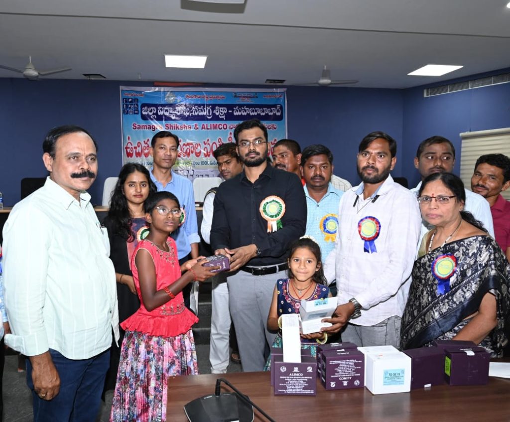 NOB-Mahabubabad news: As per the directions of the Telangana State Education Department, the District Education Department and Alinco jointly organized a program to distribute free devices to the differently abled students at the District Collectorate office on 18.03.2025. The Ministry of Social Justice & Empowerment operates under the administrative control of the Department of Empowerment of the Disabled. Alinco Company is engaged in manufacturing rehabilitation aids for the differently abled and aims to benefit the differently abled as much as possible by promoting, encouraging and developing the availability, use, supply and distribution of artificial limbs and other rehabilitation aids to the differently abled in the country. In Mahabubabad District, Alinco organized a screening camp for assistive devices for children with special needs. It was held on 24.08.2024. A total of 115 CwSN children attended, out of which 94 CwSN students were selected for various types of free equipment. A total of 202 equipment was provided to 94 CwSN children from different mandals who were selected. Addressing this program, District Additional Collector Lenin Vatsal Topso asked parents to be aware so that the disabled can fully utilize all the facilities provided by the State & Central Governments. He spoke to the disabled children and their parents while examining the equipment distributed to the disabled students and instilled confidence in them. He asked the IERPs and special education teachers to work with a service attitude & dedication towards the disabled students. He congratulated the IERPs and special educators who are providing educational services to the disabled. District Education Officer Ravinder Reddy said that it is suggested to use these free tools properly and contribute to the development of students. He wished that all Divyang students should use special education services and reach higher heights in the future. He asked parents to take advantage of the home-based education and physiotherapy camps provided by IRPs. District Literacy Coordinator Azad Chandrasekhar said that the tools distributed on 18.03.2025 are valuable and IRPs should take responsibility by explaining to parents how to use the tools. He also informed that escort allowance, transport allowance, girl’s stipend and reader allowance will also be provided by sending a Divyang student to a government school. He asked Divyang students to use their educational services through Bhavita Kendras. ED Rajeswara Rao, DSO Appa Rao, ALINCO in-charge Suresha, Mohit, special education teachers, IERPs, and parents of differently-abled students participated in this program.