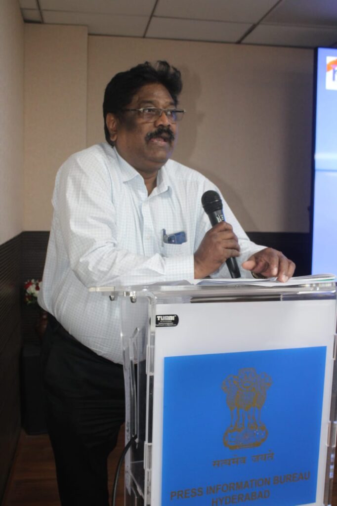 V.Balakrishna Joint Director, PIB Hyderabad delivered the welcome address Around 60 journalists from different media organizations attended the workshop. The workshop was organized as a part of the Ministry of Information and Broadcasting’s media outreach strategy conceptualized to act as a bridge between the masses and the government by empowering journalists with authentic information about government schemes and policies.