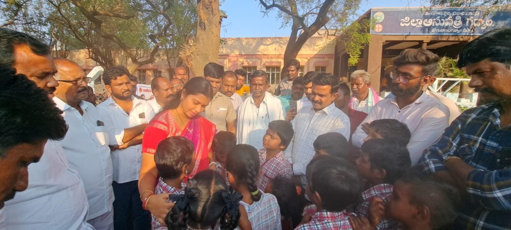 NOB- Gadwal news: In Gadwala mandal, Rekulapally village, 14 students fell ill after having lunch in a government primary school. The students were taken to the district government hospital and treated. Gadwala, a teacher who noticed students vomiting after lunch at a primary government school in Rekulapally village, has rushed the sick students to the government hospital. The doctors confirmed that the incident occurred due to water-related issues and stomach ache problem of the students who were being treated under the supervision of doctors. Zilla Parishad Chairperson Saritha came to know about the matter and visited the students. She assured the students that she will visit their school soon to find out what the problem was. Congress workers and key leaders participated in this program.