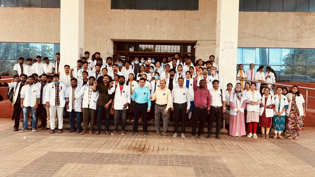 NOB- Mahabubabad news: Faculty and medical students at the Mahabubabad GGH in the district headquarters expressed solidarity by wearing black ribbons. They strongly condemned the attack on the attendants, doctors and the medical superintendent of the hospital after the death of a patient who came in an unconscious state with an oxygen level of less than 60%. They urged the government to provide a safe working environment for doctors and to arrange special police protection in all government hospitals. They demanded that adequate protective measures be taken to ensure that doctors work with dignity.