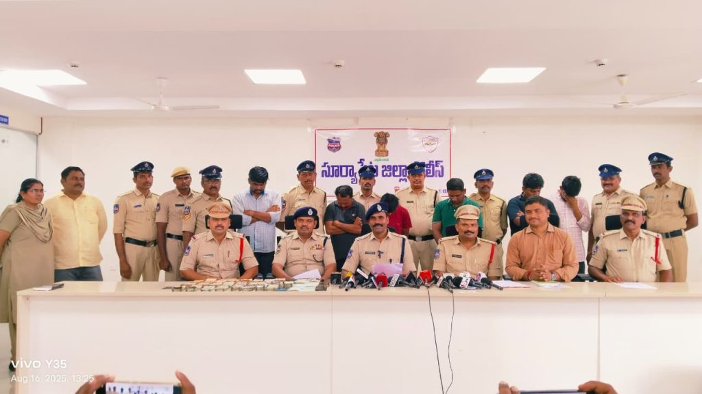 NOB- Kodada news: Chedapangu Naresh, who worked as the social media coordinator in the camp office of former MLA of Kodad constituency, Bollam Mallaiah Yadav, and Marla Veerababu and Uppala Madhu, who worked as private PAs for EX MLA Bollam Mallaiah Yadav, were the ones who supervised the CMRF cheques related to the Chief Minister’s Relief Fund. Seeing that the General Election Code was coming in November 2023, Naresh, Veera Babu, Madhu, who worked in the MLA camp office, and Suragani Rambabu, who was following them, maliciously set aside 44 CMRF checks in different names and got those checks revalidated and deposited in the accounts of other people with the same names. As part of this scheme, the 44 checks were revalidated by a person known to them, Guntuka Sandeep, who was working as a computer operator in Hyderabad, got the checks deposited in the accounts of people with the same names and got the money withdrawn through fake accounts without going to the beneficiaries. The money was shared by all. Chedapangu Naresh used to withdraw money from his friend Rangisetty Venkata Rao’s account, 6 undrawn cheques from Guntuka Sandeep, 5 cell phones used for the crime, and the remaining Rs. 9,30,000/- in cash was seized from fake accounts, the money withdrawn from banks by fraud is worth Rs. 13,63,000/-, the arrested accused will be remanded. Beneficiaries paid the price under the former MLA, private individuals working in the camp office changed the names of individuals for their own benefit and illegally drew cheques in the names of other individuals without the knowledge of the former MLA and committed this crime, DSP Sridhar Reddy, who supervised the speedy crackdown of this CMRF cheque case, Kodada Town Inspector K. Shiva Shankar, SI Hanuma Nayak, CCS Inspector Shiva Kumar, CCS Harikrishna, Head Constable Karnakar, , Srinivas, Saidulu, Anand, Mallesh, Satish, Shiva Krishna, Prabhakar, Head Constable Balthu Srinivas, Constables Yalla Reddy, Satish Naidu, Rambabu were congratulated by Suryapet District SP K. Narasimha IPS on this occasion.The SP presented rewards to the personnel who broke through the case. Details of the case in which the arrest was made Cr. No. 251/2025 U/s 61 (2),318(4), 319(2), 338,340 (2) BNS of P.S Kodad Town, Suryapet Dist.