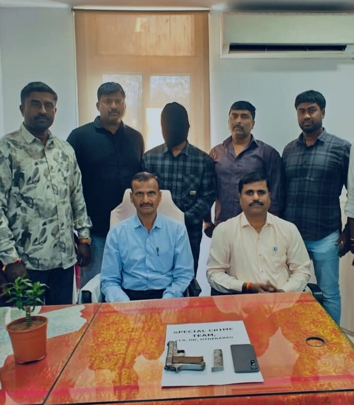 NOB-Hyderabad news: The Special Crime Team, CCS, Detective Department, Hyderabad, along with Hussainialam Police, apprehended one person on 31-12-2025 for illegal possession of a country made pistol, based on credible information. The accused, Amjad Khan (29), a resident of Hussainialam, was found in possession of a 0.7 mm country made pistol and a mobile phone. Preliminary investigation revealed that the accused had allegedly procured the weapon around 10 months ago through intermediaries from Madhya Pradesh for Rs.80,000 and kept it to threaten the general public. Two other accused involved in supplying the weapon are absconding, and efforts are on to apprehend them. The operation was carried out by D. Bikshapathi, Inspector of Police, Special Crime Team, under the supervision of G. Venkateswar Reddy, ACP, SCT, CCS Hyderabad, along with Hussainialam Police. Persons in illegal possession of arms are advised to voluntarily deposit weapons at the nearest police station. Hyderabad City Police are maintaining strict surveillance against anti-social elements.