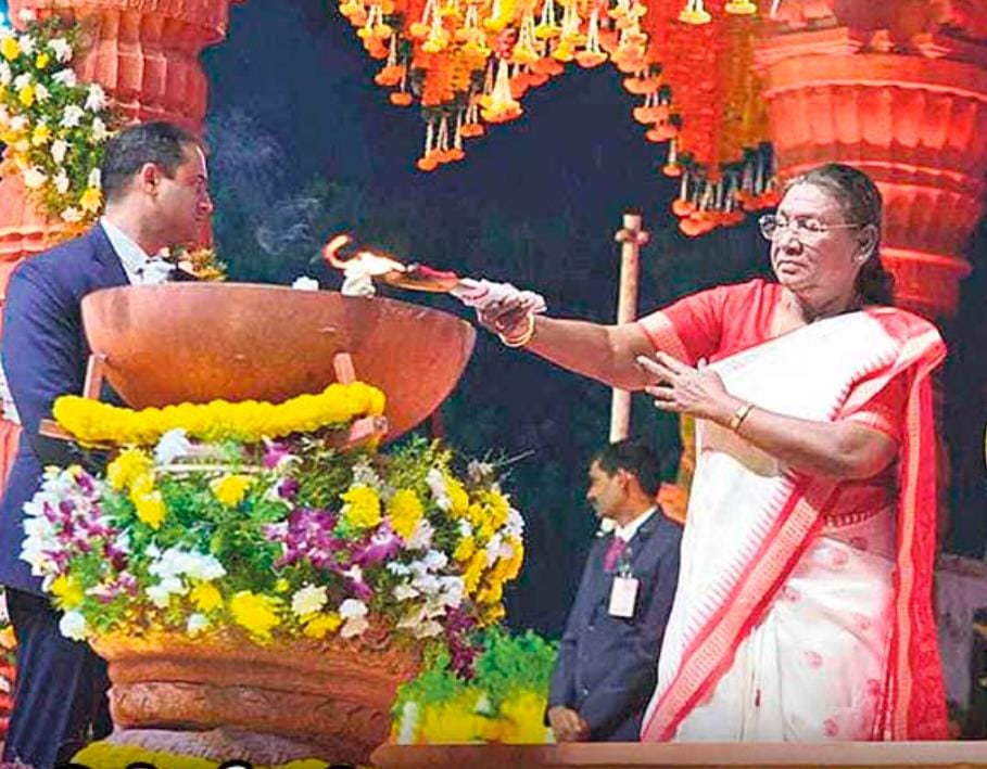 NOB-Hyderabad news: President Draupadi Murmu said that there is a great need to continuously strengthen Indian culture and customs. President Draupadi Murmu attended the Koti Deepotsavam at Shilparamam in Hyderabad as a special guest. The President addressed the devotees at the Koti Deepotsavam venue. President Draupadi Murmu said that it is our tradition to start every program with lamps. She said that he is very happy to participate in the Koti Deepotsavam. She said that everyone worships Shiva in the month of Kartika and this is the festival of victory of truth over falsehood. She expressed her joy that it is a great joy to hold the Koti Deepotsavam during the month of Kartika on Telugu soil. President Draupadi Murmu said on the stage of Koti Deepotsavam that lighting lamps together symbolizes unity. Earlier, the organizers gave a grand welcome to President Draupadi Murmu, who attended the Koti Deepotsavam as a special guest. President Draupadi Murmu was accompanied by Telangana Governor Jishnu Dev Verma. Union Minister Kishan Reddy and Minister Seethakka in the Koti Deepotsavam. President Draupadi Murmu lit the lamp during the Koti Deepotsavam ceremony. President Murmu performed special pujas to Lord Jagannath of Puri during the Koti Deepotsavam. The President presented silk robes to Sri Lakshmi Narasimha Swamy of Yadagiri. The President lit the first Karthika lamp.